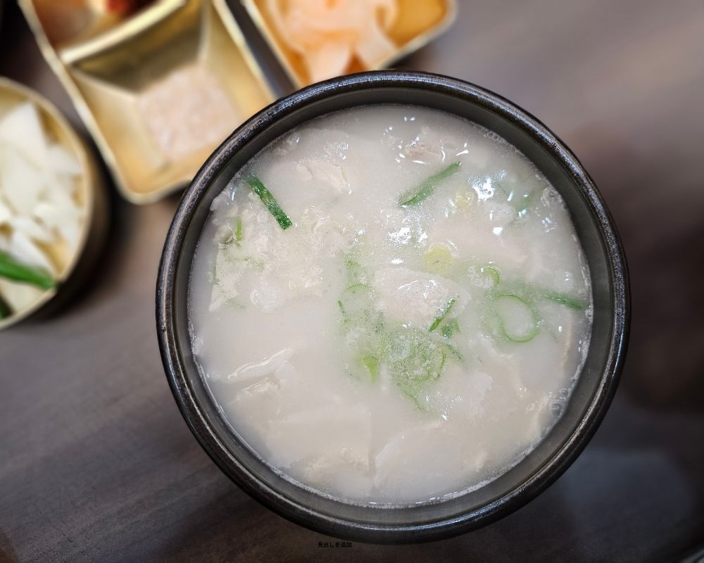 現在、日本の多くの焼肉店で「コムタンスープ」として提供されているのは、牛骨を長時間炊き上げて旨味を白濁させた濃厚なスタイル。どちらも正解ですが、あのクリーミーな白さこそが、多くの日本人が愛する「焼肉屋のコムタン」の姿と言えるでしょう。